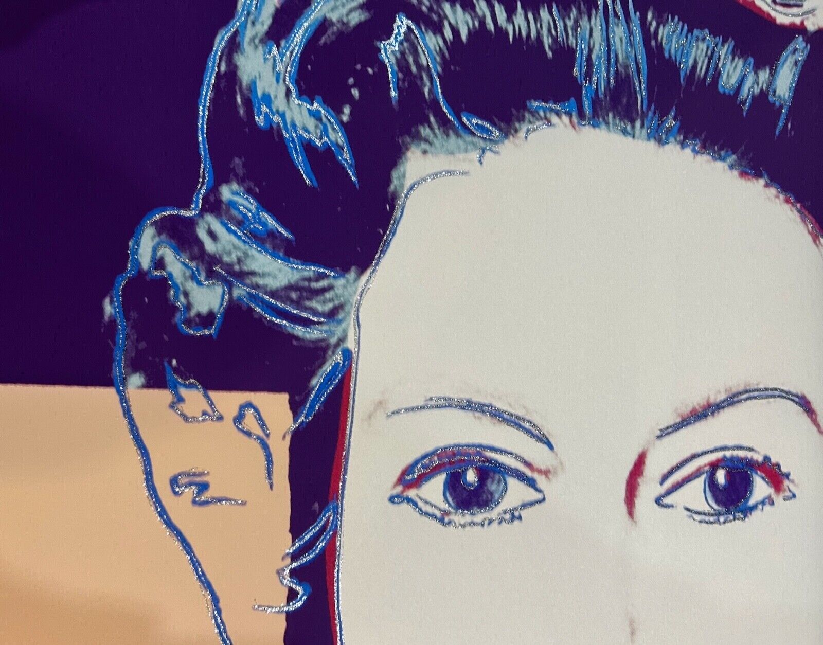 Andy Warhol “the STAR” (F&S II #258) with beige face is of Greta Garbo. Image from the Myths Suite of 1981. Trial Proof with diamond dust done by hand. Face is light beige. Diamond dust is bold and beautiful. Great statement piece.