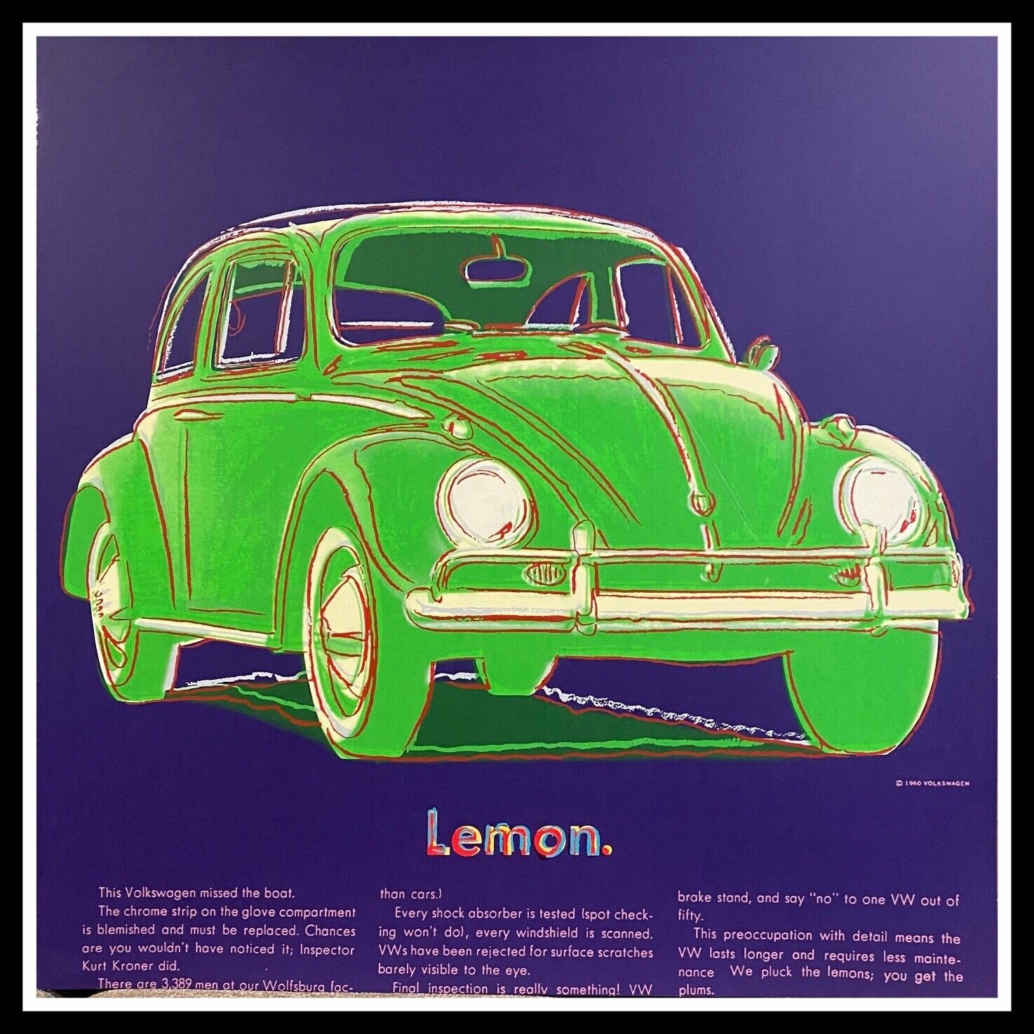 ANDY WARHOL – “VOLKSWAGEN” – (blue bkg) Ads Suite – SILKSCREEN Proof