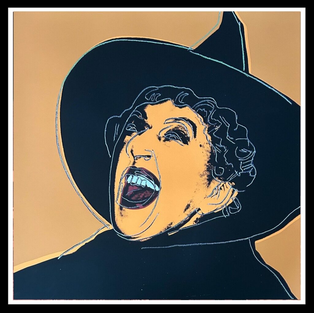 Andy Warhol “The Witch” (brown background) (F&S II #261). Silkscreen image from the Myths Suite of 1981 with diamond dust.