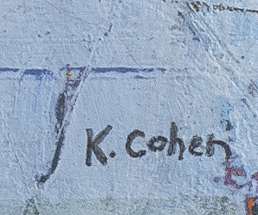 Cohen employs diverse, often aged materials in her complex constructions. Her creative process aims to tap into the collective unconscious, transforming autobiographical details into universal truths. While her earlier work was more illustrative, she has since moved into a fully abstract style, though a common thread runs throughout all her pieces, making them recognizably hers. She frequently uses acrylics and mixed media on various surfaces like wood and panel. Her works often feature vibrant colors and abstract formations, designed to evoke curiosity and introspection.