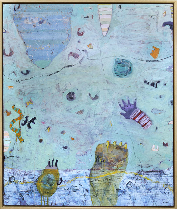 Artist Kate Cohen is a painter and sculptor who draws from the traditions of Surrealism and Folk Art. Her work is characterized by “personal icons” that use resonant symbols to record her life experiences. She often combines both painting and sculpting in her pieces, creating objects that invite viewer interaction, sometimes intellectual, with fragmented words and visual clues, and at other times physical, encouraging the viewer to pick up forms and experience the play of shadows.