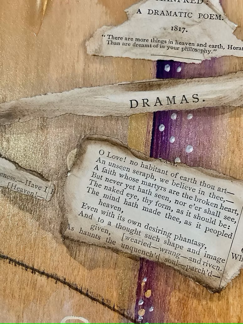 Description: A unique, multi-medium painting on Birch Board.