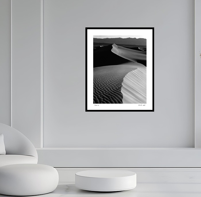 Name / Description: “#5 Death Valley Dunes” is a Pigment Print from his Designer Series of photographs.. All of the Designer Series photos are available in two sizes. Check for the size that best fits your needs.